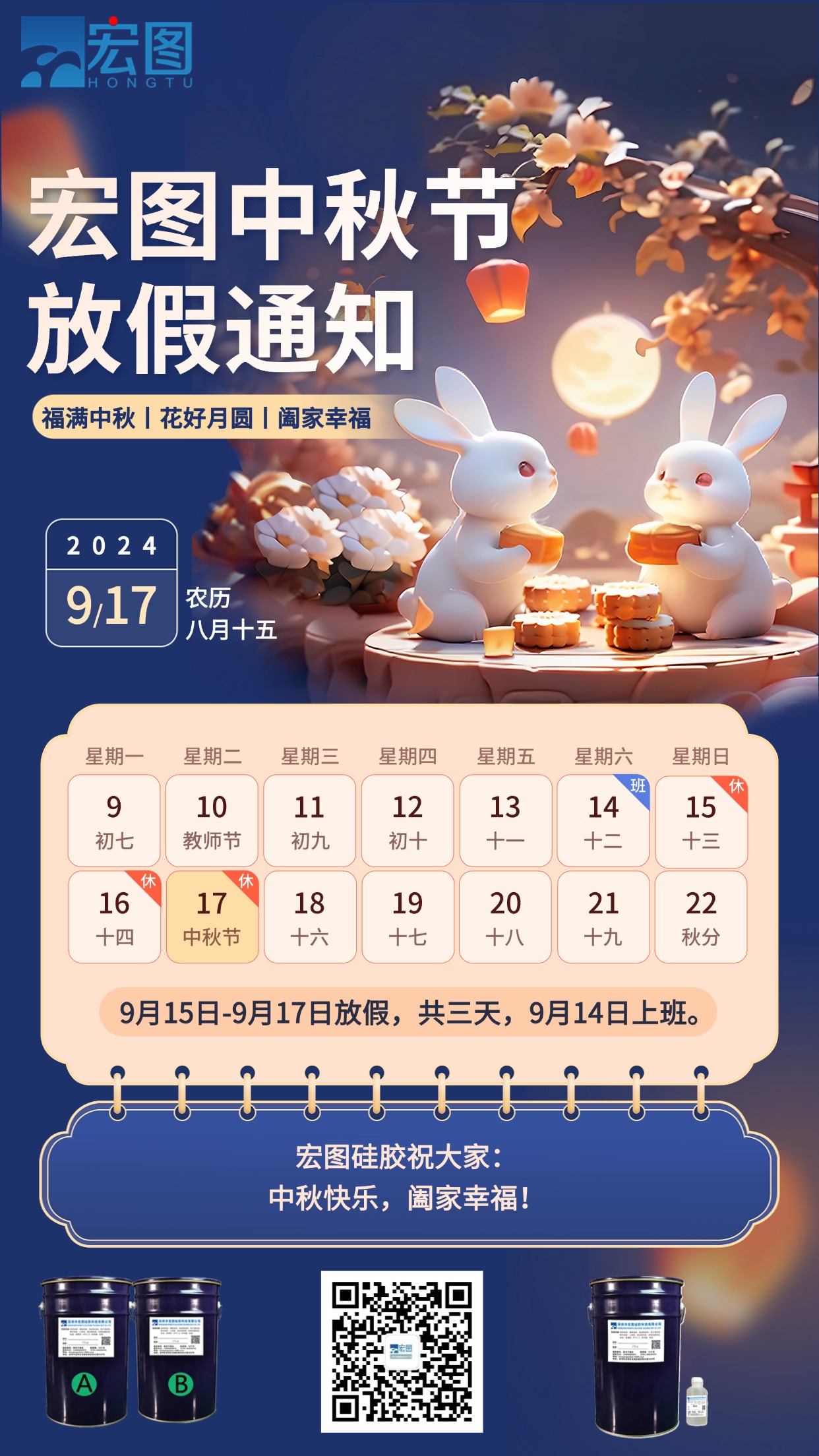 宏圖硅膠2024中秋放假通知!